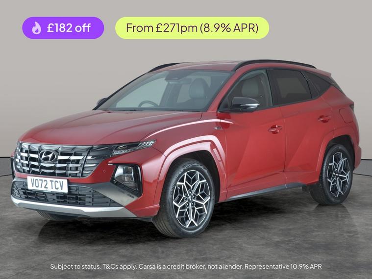 Experience style and innovation with this striking red Hyundai Tucson N Line. Enjoy the comfort of heated seats, wireless charging, and seamless connectivity with Apple CarPlay. Parking is effortless thanks to front and rear sensors and a reversing camera. Keyless entry, lane departure warning, and cruise control add convenience and safety. Stylish 19in alloy wheels and dual zone digital climate control complete this advanced hybrid SUV. Drive away in comfort and confidence today. 3 services recorded, last serviced on 08/04/2025 at 29, 963 miles. MOT to 29/11/2026. Visit our website for service history, online valuation, full vehicle specification plus multiple images. This vehicle is VAT qualifying. Any feature/option specified here is from 3rd party data. We cannot guarantee the accuracy of any specification supplied by a 3rd party. We recommend that you physically check the specification of the vehicle on site prior to purchase. This information does not form part of the buying contract. Terms & Conditions apply. We have over 2, 000 cars available from our 10 national branches, check our website to see all our stock. Our Trustpilot rating is 4.4/5 with over 9, 000 reviews.