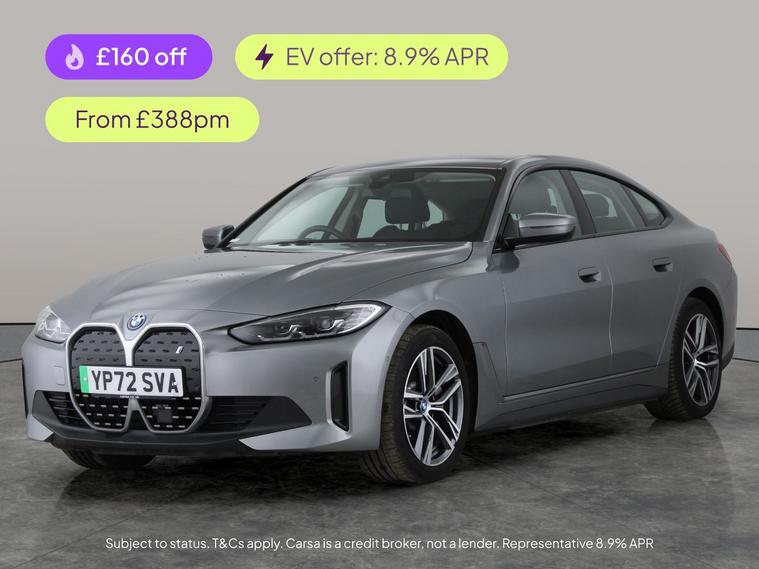 Experience luxury and innovation with this grey BMW i4 Gran Coupe. Enjoy a premium Harman/Kardon sound system and wireless charging, making every journey a pleasure. Adaptive cruise control, upgraded sound, and heated seats provide ultimate comfort and convenience. Park assist, LED headlights, and a reversing camera add peace of mind and ease to your driving. The electric boot and professional connectivity package ensure every detail is designed for your lifestyle. Discover electric performance redefined with this stunning BMW i4. 2 services recorded, last serviced on 02/12/2025 at 23, 331 miles. MOT to 22/11/2026. Visit our website for service history, online valuation, full vehicle specification plus multiple images. Certain features listed may be available via subscription packages at extra costs, please consult with BMW for details. This vehicle is VAT qualifying. Any feature/option specified here is from 3rd party data. We cannot guarantee the accuracy of any specification supplied by a 3rd party. We recommend that you physically check the specification of the vehicle on site prior to purchase. This information does not form part of the buying contract. Terms & Conditions apply. We have over 2, 000 cars available from our 10 national branches, check our website to see all our stock. Our Trustpilot rating is 4.4/5 with over 9, 000 reviews.