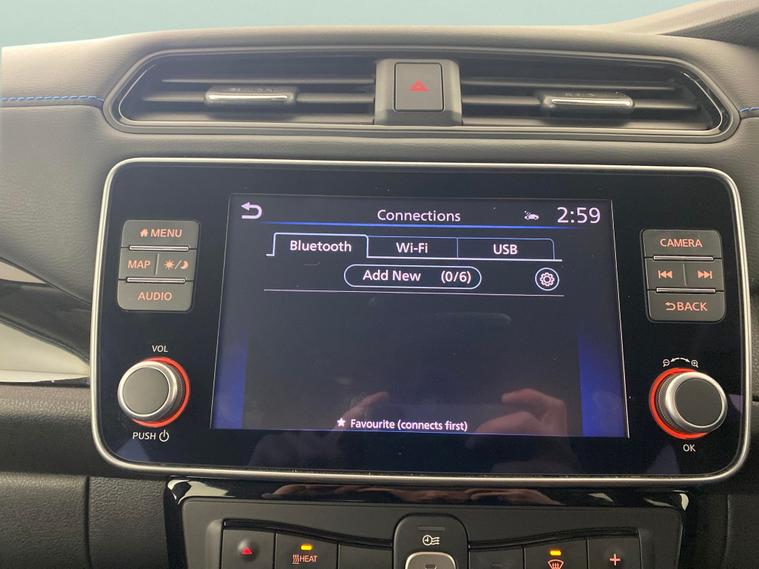 Experience the advanced Nissan Leaf, a stylish black hatchback packed with cutting-edge tech. Stay connected with Apple CarPlay and enjoy all-round confidence thanks to the 360-degree camera, Around View Monitor, Intelligent Lane Intervention, and Blind Spot Assist. Comfort is assured with heated seats, the Heat Pack, air conditioning, and keyless start. Effortless city and motorway driving is yours with cruise control, sat nav, and front and rear parking sensors. Embrace smooth, all-electric driving today. MOT to 30/09/2026. Visit our website for service history, online valuation, full vehicle specification plus multiple images. Any feature/option specified here is from 3rd party data. We cannot guarantee the accuracy of any specification supplied by a 3rd party. We recommend that you physically check the specification of the vehicle on site prior to purchase. This information does not form part of the buying contract. Terms & Conditions apply. We have over 2, 000 cars available from our 10 national branches, check our website to see all our stock. Our Trustpilot rating is 4.4/5 with over 9, 000 reviews.