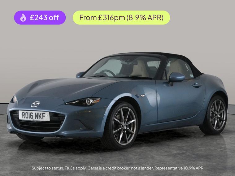 Turn heads in this stunning blue Mazda MX-5 convertible, boasting luxurious leather seats and a powerful upgraded sound system for an immersive drive. Enjoy the convenience of keyless entry and start, plus advanced features like sat nav, cruise control, and adaptive LED headlights. Stay comfortable with heated seats and climate control, while the 17in alloy wheels enhance both style and performance. Safety is covered with lane departure warning, making this MX-5 the ideal blend of excitement and peace of mind. 6 services recorded, last serviced on 08/12/2025 at 34, 834 miles. MOT to 07/11/2026. Visit our website for service history, online valuation, full vehicle specification plus multiple images. Any feature/option specified here is from 3rd party data. We cannot guarantee the accuracy of any specification supplied by a 3rd party. We recommend that you physically check the specification of the vehicle on site prior to purchase. This information does not form part of the buying contract. Terms & Conditions apply. We have over 2, 000 cars available from our 10 national branches, check our website to see all our stock. Our Trustpilot rating is 4.4/5 with over 9, 000 reviews.