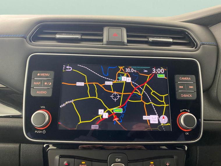 Experience the advanced Nissan Leaf, a stylish black hatchback packed with cutting-edge tech. Stay connected with Apple CarPlay and enjoy all-round confidence thanks to the 360-degree camera, Around View Monitor, Intelligent Lane Intervention, and Blind Spot Assist. Comfort is assured with heated seats, the Heat Pack, air conditioning, and keyless start. Effortless city and motorway driving is yours with cruise control, sat nav, and front and rear parking sensors. Embrace smooth, all-electric driving today. MOT to 30/09/2026. Visit our website for service history, online valuation, full vehicle specification plus multiple images. Any feature/option specified here is from 3rd party data. We cannot guarantee the accuracy of any specification supplied by a 3rd party. We recommend that you physically check the specification of the vehicle on site prior to purchase. This information does not form part of the buying contract. Terms & Conditions apply. We have over 2, 000 cars available from our 10 national branches, check our website to see all our stock. Our Trustpilot rating is 4.4/5 with over 9, 000 reviews.