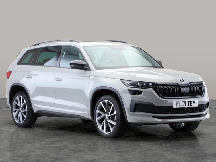 Experience the sophistication of this grey Skoda Kodiaq SportLine, loaded with fantastic features. Effortless parking is yours with Park Assist and a Reversing Camera, while heated, electrically adjustable seats with driver memory add a touch of luxury. The advanced Skoda Columbus touchscreen navigation and Apple CarPlay keep you connected, and keyless entry adds convenience. Enjoy seamless journeys with cruise control, climate control, and a wireless charger for your devices. A brilliant family SUV with seven seats and dynamic 4WD capability. 1 service recorded, last serviced on 19/08/2025 at 42, 955 miles. MOT to 12/08/2026. Visit our website for service history, online valuation, full vehicle specification plus multiple images. Any feature/option specified here is from 3rd party data. We cannot guarantee the accuracy of any specification supplied by a 3rd party. We recommend that you physically check the specification of the vehicle on site prior to purchase. This information does not form part of the buying contract. Terms & Conditions apply. We have over 2, 000 cars available from our 10 national branches, check our website to see all our stock. Our Trustpilot rating is 4.4/5 with over 9, 000 reviews.