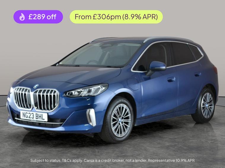 Experience luxury and efficiency with this blue BMW 2 Series Active Tourer plug-in hybrid. Enjoy premium Vernasca leather seats, heated for added comfort, and a high-tech interior featuring Apple CarPlay, WiFi, and Bluetooth audio streaming. Stay safe and confident with Active Lane Assist, Lane Departure Warning, Park Assist, and a reversing camera. LED headlights, sat nav, cruise control, attentiveness assistant, and eDrive exterior sound complete this stylish, family-friendly MPV. 4WD confidence and automatic transmission make every journey a pleasure. 2 services recorded, last serviced on 05/12/2025 at 32, 244 miles. MOT to 15/06/2026. Visit our website for service history, online valuation, full vehicle specification plus multiple images. Certain features listed may be available via subscription packages at extra costs, please consult with BMW for details. This vehicle is VAT qualifying. Any feature/option specified here is from 3rd party data. We cannot guarantee the accuracy of any specification supplied by a 3rd party. We recommend that you physically check the specification of the vehicle on site prior to purchase. This information does not form part of the buying contract. Terms & Conditions apply. We have over 2, 000 cars available from our 10 national branches, check our website to see all our stock. Our Trustpilot rating is 4.4/5 with over 9, 000 reviews.