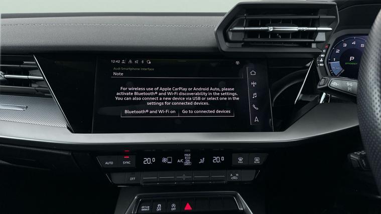 Experience the Audi A3 S line in striking white, featuring MMI Navigation Plus and advanced LED headlights for a clear, stylish drive. Stay on track with built-in Sat Nav and enjoy confidence on every journey thanks to the Lane Departure Warning System and adaptive Driving Modes. Automatic transmission keeps every drive smooth, while climate control and Bluetooth connectivity add comfort and convenience. This sporty hatchback brings together high-tech features and premium Audi quality in a sleek, modern package. 3 services recorded, last serviced on 21/08/2025 at 14, 152 miles. MOT to 18/08/2026. Visit our website for service history, online valuation, full vehicle specification plus multiple images. This vehicle is VAT qualifying. Any feature/option specified here is from 3rd party data. We cannot guarantee the accuracy of any specification supplied by a 3rd party. We recommend that you physically check the specification of the vehicle on site prior to purchase. This information does not form part of the buying contract. Terms & Conditions apply. We have over 2, 000 cars available from our 10 national branches, check our website to see all our stock. Our Trustpilot rating is 4.4/5 with over 9, 000 reviews.