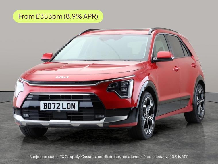 Discover the Kia Niro SUV in striking red, featuring premium touches like a panoramic sunroof and head-up display for a truly upmarket feel. Enjoy heated, electric, and memory seats, plus a heated steering wheel for year-round comfort. Stay connected with Apple CarPlay and Bluetooth audio streaming, and navigate with ease using the built-in sat nav. LED headlights, park assist, and a reversing camera provide extra confidence, while advanced safety tech includes blind spot assist and lane departure warning. A sophisticated hybrid choice with smart automatic convenience. 3 services recorded, last serviced on 11/09/2025 at 28, 990 miles. MOT to 10/10/2026. Visit our website for service history, online valuation, full vehicle specification plus multiple images. This vehicle is VAT qualifying. Any feature/option specified here is from 3rd party data. We cannot guarantee the accuracy of any specification supplied by a 3rd party. We recommend that you physically check the specification of the vehicle on site prior to purchase. This information does not form part of the buying contract. Terms & Conditions apply. We have over 2, 000 cars available from our 10 national branches, check our website to see all our stock. Our Trustpilot rating is 4.4/5 with over 9, 000 reviews.