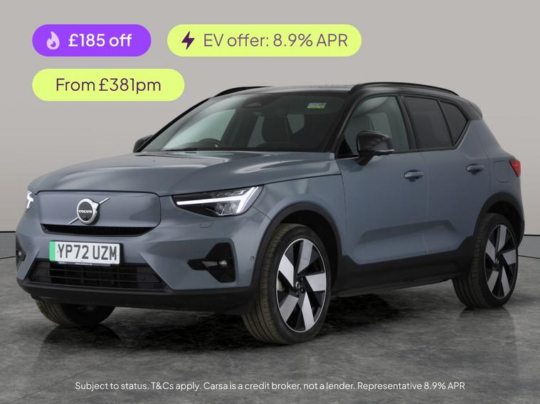 Experience the Volvo XC40 Recharge, a superb electric SUV loaded with premium features. Enjoy luxury touches like a panoramic sunroof, Harman/Kardon upgraded sound, and a stylish Connect Textile-Microtech Charcoal interior. Stay cosy with heated seats and steering wheel, while adaptive cruise control and driver assist make each journey smooth and safe. Parkings effortless with surround view and park assist. Seamless connectivity is yours with Apple CarPlay, and LED headlights light the way in style. 2 services recorded, last serviced on 08/12/2025 at 23, 364 miles. MOT to 24/11/2026. Visit our website for service history, online valuation, full vehicle specification plus multiple images. This vehicle is VAT qualifying. Any feature/option specified here is from 3rd party data. We cannot guarantee the accuracy of any specification supplied by a 3rd party. We recommend that you physically check the specification of the vehicle on site prior to purchase. This information does not form part of the buying contract. Terms & Conditions apply. We have over 2, 000 cars available from our 10 national branches, check our website to see all our stock. Our Trustpilot rating is 4.4/5 with over 9, 000 reviews.