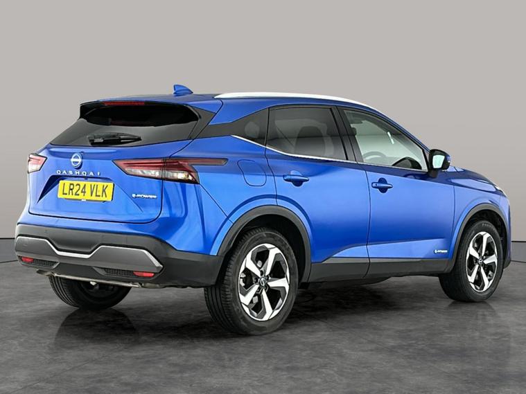 Discover the Nissan Qashqai in striking blue, featuring a brilliant Glass Roof Pack for an airy, open feel. Enjoy seamless journeys with Apple CarPlay, surround view via 360-degree cameras, and a clever Around View Monitor. Stay safe with Intelligent Lane Intervention, Blind Spot Assist, and Lane Departure Warning. LED headlights light up the way, while built-in Sat Nav, Bluetooth audio streaming, and cruise control make every drive effortless. This automatic petrol hybrid brings premium comfort and smart technology together. 1 service recorded, last serviced on 15/04/2025 at 22, 032 miles. MOT to 19/06/2027. Visit our website for service history, online valuation, full vehicle specification plus multiple images. Any feature/option specified here is from 3rd party data. We cannot guarantee the accuracy of any specification supplied by a 3rd party. We recommend that you physically check the specification of the vehicle on site prior to purchase. This information does not form part of the buying contract. Terms & Conditions apply. We have over 2, 000 cars available from our 10 national branches, check our website to see all our stock. Our Trustpilot rating is 4.4/5 with over 9, 000 reviews.