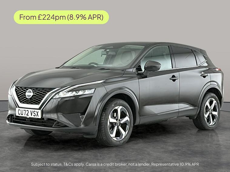 Experience the Nissan Qashqai in stunning black, featuring advanced surround view and a 360-degree camera for effortless parking. Enjoy crystal-clear LED headlights, Apple CarPlay, built-in sat nav, and Bluetooth audio streaming for seamless connectivity on every journey. Safety highlights include intelligent lane intervention, blind spot assist, and traffic sign recognition, while cruise control makes every drive a breeze. Discover hybrid efficiency paired with innovative technology in this stylish SUV. 4 services recorded, last serviced on 16/09/2025 at 20, 203 miles. MOT to 21/08/2026. Visit our website for service history, online valuation, full vehicle specification plus multiple images. Any feature/option specified here is from 3rd party data. We cannot guarantee the accuracy of any specification supplied by a 3rd party. We recommend that you physically check the specification of the vehicle on site prior to purchase. This information does not form part of the buying contract. Terms & Conditions apply. We have over 2, 000 cars available from our 10 national branches, check our website to see all our stock. Our Trustpilot rating is 4.4/5 with over 9, 000 reviews.
