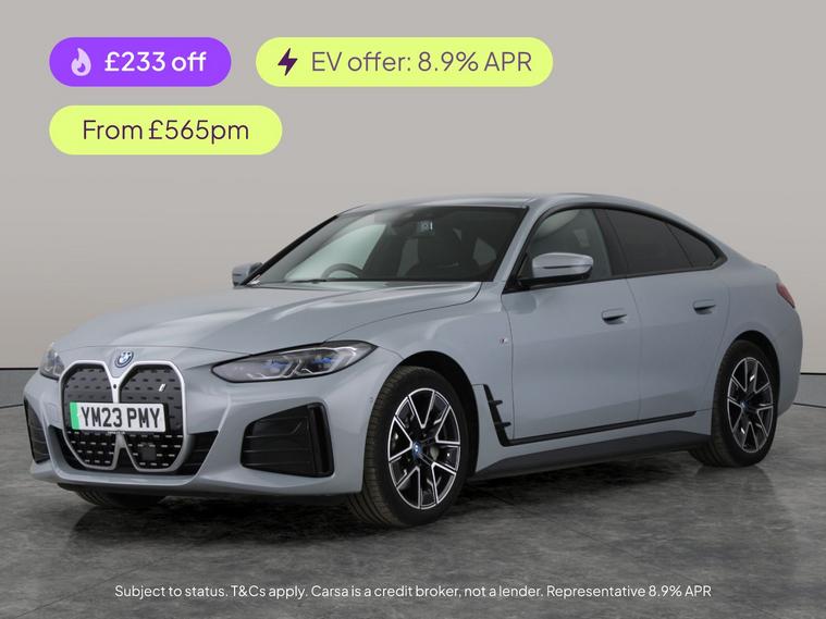 Experience luxury and innovation with this BMW i4 M Sport Gran Coupe in sleek grey. Enjoy effortless parking with Parking Assistant Plus and relax with advanced front lumbar support. The Visibility Pack, rear privacy glass and sun protection glass keep every journey comfortable and exclusive. Inside, you'll find Vernasca leather seats, advanced adaptive cruise control, LED headlights and a reversing camera. Stay connected with BMWs Connected Package Professional and drive in style on 18in alloy wheels. Discover the future of electric performance today. MOT to 09/01/2027. Visit our website for service history, online valuation, full vehicle specification plus multiple images. Certain features listed may be available via subscription packages at extra costs, please consult with BMW for details. This vehicle is VAT qualifying. Any feature/option specified here is from 3rd party data. We cannot guarantee the accuracy of any specification supplied by a 3rd party. We recommend that you physically check the specification of the vehicle on site prior to purchase. This information does not form part of the buying contract. Terms & Conditions apply. We have over 2, 000 cars available from our 10 national branches, check our website to see all our stock. Our Trustpilot rating is 4.4/5 with over 9, 000 reviews.