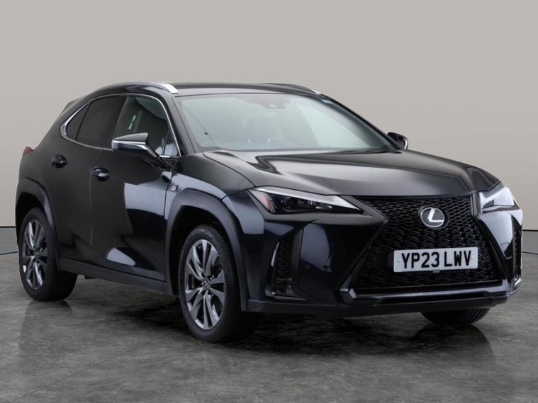 Discover the sophistication of the Lexus UX F Sport Design. This striking black SUV offers added comfort with heated seats and a heated steering wheel for those chilly mornings. The premium features include a reversing camera, sat nav, blind spot assist, and a convenient automatic transmission. Enjoy seamless connectivity with Bluetooth, cruise smoothly with cruise control, and tailor your journey with selectable driving modes. Dual-zone climate control and air conditioning keep every drive perfectly comfortable. Experience hybrid efficiency in a stylish package. MOT to 04/05/2026. Visit our website for service history, online valuation, full vehicle specification plus multiple images. Any feature/option specified here is from 3rd party data. We cannot guarantee the accuracy of any specification supplied by a 3rd party. We recommend that you physically check the specification of the vehicle on site prior to purchase. This information does not form part of the buying contract. Terms & Conditions apply. We have over 2, 000 cars available from our 10 national branches, check our website to see all our stock. Our Trustpilot rating is 4.4/5 with over 9, 000 reviews.