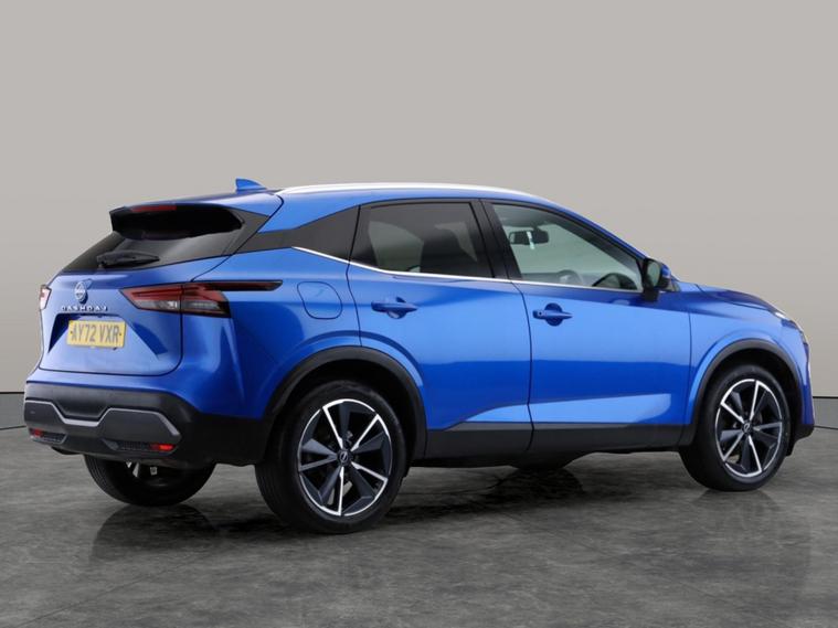 Experience the Nissan Qashqai like never before with its luxurious glass roof pack, surround view 360 degree camera, and advanced head-up display. Stay cosy with heated seats and a heated steering wheel, and navigate effortlessly using the built-in sat nav and Apple CarPlay. Enjoy the confidence of LED headlights, intelligent lane intervention, blind spot assist, and lane departure warning. Effortless automatic driving and a striking blue finish complete this smart, hybrid SUV. 1 service recorded, last serviced on 23/11/2025 at 26, 487 miles. MOT to 14/09/2026. Visit our website for service history, online valuation, full vehicle specification plus multiple images. Any feature/option specified here is from 3rd party data. We cannot guarantee the accuracy of any specification supplied by a 3rd party. We recommend that you physically check the specification of the vehicle on site prior to purchase. This information does not form part of the buying contract. Terms & Conditions apply. We have over 2, 000 cars available from our 10 national branches, check our website to see all our stock. Our Trustpilot rating is 4.4/5 with over 9, 000 reviews.