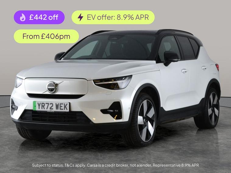 Experience luxury driving with this stunning white Volvo XC40 Recharge. Enjoy the open sky through its panoramic roof and sunroof, and stay comfortable with heated seats and a heated steering wheel. Effortless control is yours with adaptive cruise control, keyless entry, and advanced surround view 360-degree camera plus park assist and a reversing camera for stress-free parking. The premium Harman/Kardon sound system with Apple CarPlay ensures every journey sounds as good as it feels. Sophisticated, all-electric, and ready for adventure. 2 services recorded, last serviced on 11/12/2025 at 24, 733 miles. MOT to 20/10/2026. Visit our website for service history, online valuation, full vehicle specification plus multiple images. This vehicle is VAT qualifying. Any feature/option specified here is from 3rd party data. We cannot guarantee the accuracy of any specification supplied by a 3rd party. We recommend that you physically check the specification of the vehicle on site prior to purchase. This information does not form part of the buying contract. Terms & Conditions apply. We have over 2, 000 cars available from our 10 national branches, check our website to see all our stock. Our Trustpilot rating is 4.4/5 with over 9, 000 reviews.