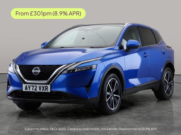 Experience the Nissan Qashqai like never before with its luxurious glass roof pack, surround view 360 degree camera, and advanced head-up display. Stay cosy with heated seats and a heated steering wheel, and navigate effortlessly using the built-in sat nav and Apple CarPlay. Enjoy the confidence of LED headlights, intelligent lane intervention, blind spot assist, and lane departure warning. Effortless automatic driving and a striking blue finish complete this smart, hybrid SUV. 1 service recorded, last serviced on 23/11/2025 at 26, 487 miles. MOT to 14/09/2026. Visit our website for service history, online valuation, full vehicle specification plus multiple images. Any feature/option specified here is from 3rd party data. We cannot guarantee the accuracy of any specification supplied by a 3rd party. We recommend that you physically check the specification of the vehicle on site prior to purchase. This information does not form part of the buying contract. Terms & Conditions apply. We have over 2, 000 cars available from our 10 national branches, check our website to see all our stock. Our Trustpilot rating is 4.4/5 with over 9, 000 reviews.