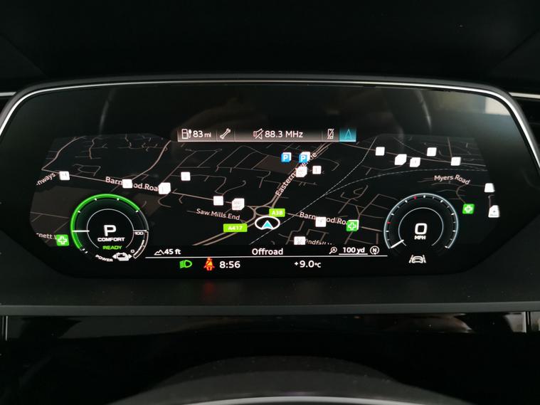 Experience the sophisticated Audi e-tron SUV in stylish grey, fitted with eye-catching 20in alloy wheels. Enjoy advanced tech like MMI Navigation Plus, Audi Virtual Cockpit, and seamless Apple CarPlay. Sink into heated leather seats, with electric and driver memory adjustment for personalised comfort. Keyless entry and a reversing camera make every journey effortless, while LED headlights and adjustable suspension add confidence and comfort. Stay safe with lane departure warning, cruise control, and effortless Bluetooth audio streaming. 2 services recorded, last serviced on 17/12/2025 at 9, 086 miles. MOT to 18/11/2026. Visit our website for service history, online valuation, full vehicle specification plus multiple images. Certain features listed may be available via subscription packages at extra costs, please consult with Audi for details. This vehicle is VAT qualifying. Any feature/option specified here is from 3rd party data. We cannot guarantee the accuracy of any specification supplied by a 3rd party. We recommend that you physically check the specification of the vehicle on site prior to purchase. This information does not form part of the buying contract. Terms & Conditions apply. We have over 2, 000 cars available from our 10 national branches, check our website to see all our stock. Our Trustpilot rating is 4.4/5 with over 9, 000 reviews.