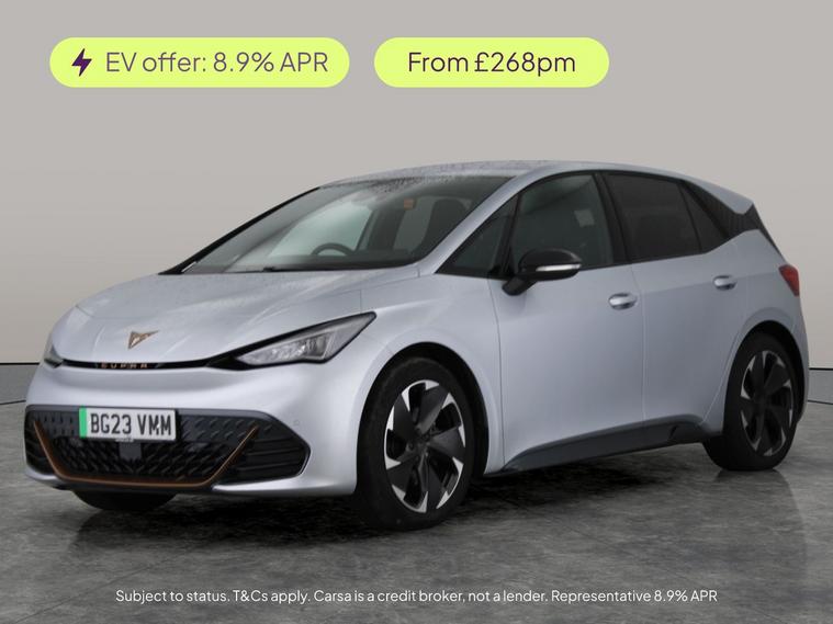 Experience innovation with the Cupra Born. This striking silver hatchback boasts cutting-edge features like a Head-Up Display for effortless driving, stunning LED headlights, and luxurious heated seats for added comfort. Stay connected on every journey with built-in sat nav, Bluetooth, and a convenient wireless charger. Enjoy smooth rides on stylish 19in alloy wheels, and conquer every season with air conditioning and climate control. Discover the future of electric motoring today. 1 service recorded, last serviced on 16/12/2025 at 25, 001 miles. MOT to 17/05/2026. Visit our website for service history, online valuation, full vehicle specification plus multiple images. This vehicle is VAT qualifying. Any feature/option specified here is from 3rd party data. We cannot guarantee the accuracy of any specification supplied by a 3rd party. We recommend that you physically check the specification of the vehicle on site prior to purchase. This information does not form part of the buying contract. Terms & Conditions apply. We have over 2, 000 cars available from our 10 national branches, check our website to see all our stock. Our Trustpilot rating is 4.4/5 with over 9, 000 reviews.