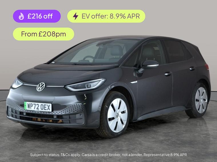 Experience the future of driving with this stylish grey Volkswagen ID.3. Enjoy the open sky through the panoramic roof and sunroof, while advanced features like Adaptive Cruise Control, Active Lane Assist, Blind Spot Assist and Lane Departure Warning System keep every journey safe and smooth. Enjoy seamless connectivity with Apple CarPlay and Bluetooth audio streaming, while LED headlights and a reversing camera make every drive effortless. This electric hatchback is ready for your next adventure. 2 services recorded, last serviced on 16/12/2025 at 31, 452 miles. MOT to 15/12/2026. Visit our website for service history, online valuation, full vehicle specification plus multiple images. This vehicle is VAT qualifying. Any feature/option specified here is from 3rd party data. We cannot guarantee the accuracy of any specification supplied by a 3rd party. We recommend that you physically check the specification of the vehicle on site prior to purchase. This information does not form part of the buying contract. Terms & Conditions apply. We have over 2, 000 cars available from our 10 national branches, check our website to see all our stock. Our Trustpilot rating is 4.4/5 with over 9, 000 reviews.