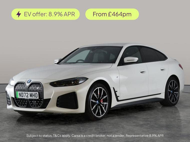 Experience the thrill of the BMW i4 M Sport Gran Coupe, enhanced with the stunning M Sport Pro Package and striking 19in M Light Y-Spoke alloy wheels. Glide through your journeys with adaptive cruise control, park assist, LED headlights and a reversing camera for effortless driving. Enjoy the luxury of heated Alcantara and half-leather seats, a premium sound experience with eDrive Exterior Sound, plus seamless journeys with sat nav and BMW Connected Package Professional. Electric boot and air conditioning complete this exceptional package. 2 services recorded, last serviced on 21/12/2025 at 25, 655 miles. MOT to 26/10/2026. Visit our website for service history, online valuation, full vehicle specification plus multiple images. Certain features listed may be available via subscription packages at extra costs, please consult with BMW for details. This vehicle is VAT qualifying. Any feature/option specified here is from 3rd party data. We cannot guarantee the accuracy of any specification supplied by a 3rd party. We recommend that you physically check the specification of the vehicle on site prior to purchase. This information does not form part of the buying contract. Terms & Conditions apply. We have over 2, 000 cars available from our 10 national branches, check our website to see all our stock. Our Trustpilot rating is 4.4/5 with over 9, 000 reviews.