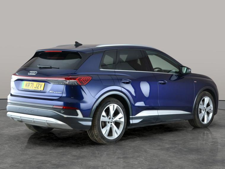 Experience the Audi Q4 E-tron S line in striking blue, complete with upgraded sound and MMI Navigation Plus for seamless journeys. Enjoy heated seats and LED headlights for added comfort and style. Benefit from cutting-edge safety tech like Lane Departure Warning, Traffic Sign Recognition, and Cruise Control. Enjoy Bluetooth connectivity, versatile driving modes, and the convenience of supplied charging leads. All the refinement and advanced technology you expect from an Audi SUV. 2 services recorded, last serviced on 17/12/2025 at 47, 874 miles. MOT to 12/11/2026. Visit our website for service history, online valuation, full vehicle specification plus multiple images. Certain features listed may be available via subscription packages at extra costs, please consult with Audi for details. This vehicle is VAT qualifying. Any feature/option specified here is from 3rd party data. We cannot guarantee the accuracy of any specification supplied by a 3rd party. We recommend that you physically check the specification of the vehicle on site prior to purchase. This information does not form part of the buying contract. Terms & Conditions apply. We have over 2, 000 cars available from our 10 national branches, check our website to see all our stock. Our Trustpilot rating is 4.4/5 with over 9, 000 reviews.