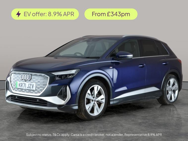 Experience the Audi Q4 E-tron S line in striking blue, complete with upgraded sound and MMI Navigation Plus for seamless journeys. Enjoy heated seats and LED headlights for added comfort and style. Benefit from cutting-edge safety tech like Lane Departure Warning, Traffic Sign Recognition, and Cruise Control. Enjoy Bluetooth connectivity, versatile driving modes, and the convenience of supplied charging leads. All the refinement and advanced technology you expect from an Audi SUV. 2 services recorded, last serviced on 17/12/2025 at 47, 874 miles. MOT to 12/11/2026. Visit our website for service history, online valuation, full vehicle specification plus multiple images. Certain features listed may be available via subscription packages at extra costs, please consult with Audi for details. This vehicle is VAT qualifying. Any feature/option specified here is from 3rd party data. We cannot guarantee the accuracy of any specification supplied by a 3rd party. We recommend that you physically check the specification of the vehicle on site prior to purchase. This information does not form part of the buying contract. Terms & Conditions apply. We have over 2, 000 cars available from our 10 national branches, check our website to see all our stock. Our Trustpilot rating is 4.4/5 with over 9, 000 reviews.