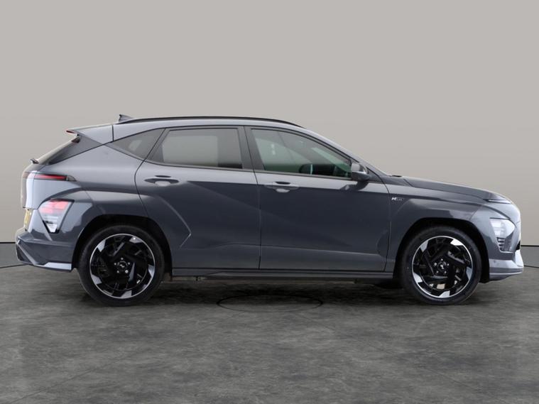 Experience the Hyundai Kona Electric N Line S with luxury touches. Enjoy the open road through the sunroof, a premium BOSE sound system, and Alcantara interiors for a stylish ride. Stay informed with a Head-Up Display and Sat Nav, while heated seats and a heated steering wheel keep you comfortable year-round. Parking is effortless with Surround View, Park Assist and a reversing camera. Drive with confidence thanks to Blind Spot Assist, Lane Departure Warning, and the convenience of a driver memory seat. All in a dynamic grey SUV. MOT to 18/09/2027. Visit our website for service history, online valuation, full vehicle specification plus multiple images. Any feature/option specified here is from 3rd party data. We cannot guarantee the accuracy of any specification supplied by a 3rd party. We recommend that you physically check the specification of the vehicle on site prior to purchase. This information does not form part of the buying contract. Terms & Conditions apply. We have over 2, 000 cars available from our 10 national branches, check our website to see all our stock. Our Trustpilot rating is 4.4/5 with over 9, 000 reviews.