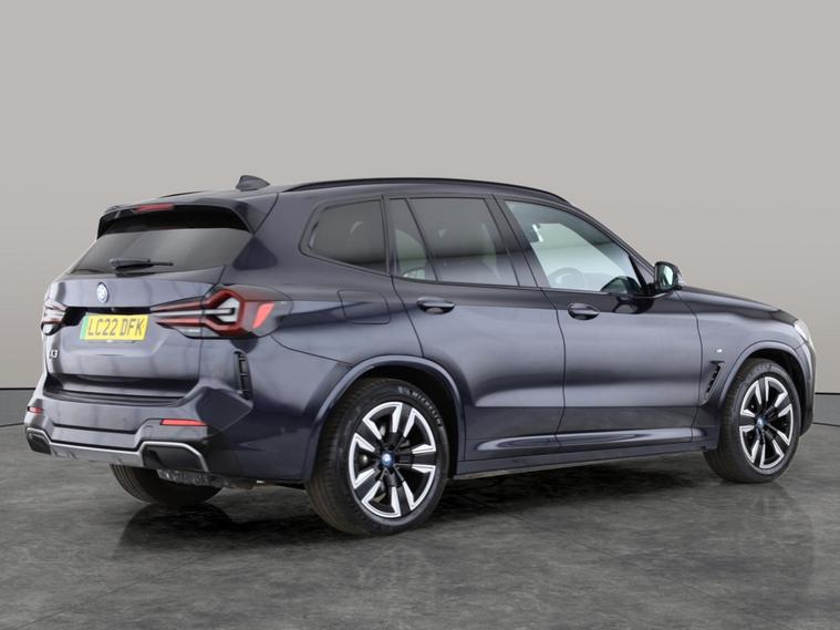 Experience pure electric luxury with this BMW iX3 M Sport in striking black. Enjoy advanced Laserlights, a stunning panoramic sunroof, Vernasca leather seats, and a heated steering wheel for ultimate comfort. Stay safe and at ease with Driving Assistant, Park Assist, and a reversing camera. Adaptive M Sport suspension ensures a responsive drive, while LED headlights illuminate the road ahead. Cutting-edge tech includes BMW Live Cockpit Professional and Attentiveness Assistant for a truly connected journey. 2 services recorded, last serviced on 28/05/2025 at 28, 475 miles. MOT to 18/11/2026. Visit our website for service history, online valuation, full vehicle specification plus multiple images. Certain features listed may be available via subscription packages at extra costs, please consult with BMW for details. This vehicle is VAT qualifying. Any feature/option specified here is from 3rd party data. We cannot guarantee the accuracy of any specification supplied by a 3rd party. We recommend that you physically check the specification of the vehicle on site prior to purchase. This information does not form part of the buying contract. Terms & Conditions apply. We have over 2, 000 cars available from our 10 national branches, check our website to see all our stock. Our Trustpilot rating is 4.4/5 with over 9, 000 reviews.