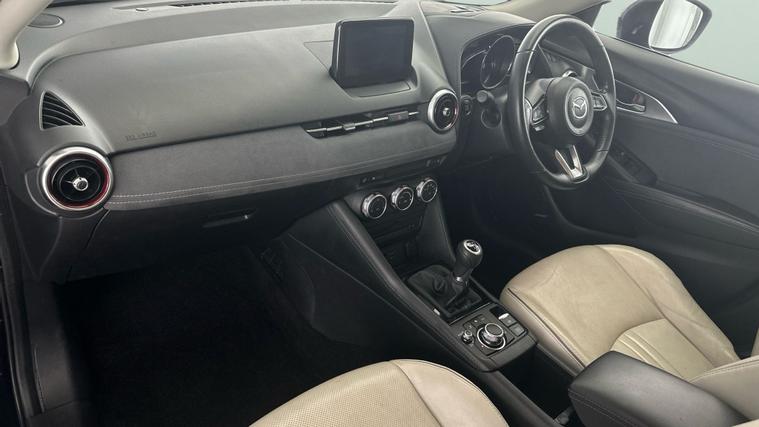 Experience driving pleasure in the Mazda CX-3 Sport Nav, finished in sleek black. Enjoy luxury features like a Head-Up Display, premium BOSE sound system, heated seats, and a heated steering wheel for ultimate comfort. Effortless journeys await with keyless entry, LED headlights, adaptive lighting, and a reversing camera. Stay informed and connected with integrated sat nav, Bluetooth audio streaming, and a lane departure warning system for added peace of mind. Stylish, practical and packed with technology this is the ideal compact SUV. 1 service recorded, last serviced on 17/09/2025 at 29, 730 miles. MOT to 16/09/2026. Visit our website for service history, online valuation, full vehicle specification plus multiple images. Any feature/option specified here is from 3rd party data. We cannot guarantee the accuracy of any specification supplied by a 3rd party. We recommend that you physically check the specification of the vehicle on site prior to purchase. This information does not form part of the buying contract. Terms & Conditions apply. We have over 2, 000 cars available from our 10 national branches, check our website to see all our stock. Our Trustpilot rating is 4.4/5 with over 9, 000 reviews.