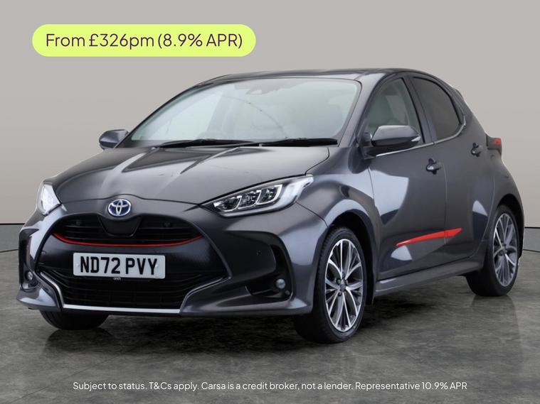Experience effortless drives in this stylish grey Toyota Yaris Hybrid Automatic. Enjoy modern comforts with Adaptive Cruise Control, Apple CarPlay, and LED headlights. Stay safe with Blind Spot Assist, Lane Trace Assist, and a handy Reversing Camera. Navigation is a breeze with built-in Sat Nav, while Bluetooth and air conditioning keep every journey enjoyable. Perfect for those who appreciate advanced technology and efficiency in a practical hatchback. 3 services recorded, last serviced on 03/10/2025 at 18, 641 miles. MOT to 28/09/2026. Visit our website for service history, online valuation, full vehicle specification plus multiple images. Any feature/option specified here is from 3rd party data. We cannot guarantee the accuracy of any specification supplied by a 3rd party. We recommend that you physically check the specification of the vehicle on site prior to purchase. This information does not form part of the buying contract. Terms & Conditions apply. We have over 2, 000 cars available from our 10 national branches, check our website to see all our stock. Our Trustpilot rating is 4.4/5 with over 9, 000 reviews.