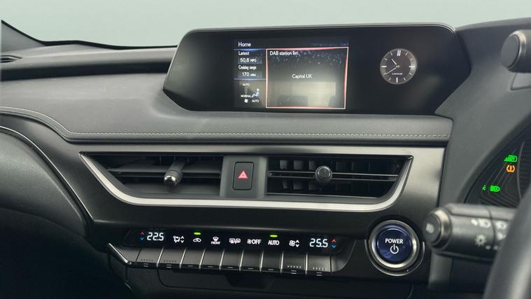 Experience the sophisticated Lexus UX 2.0 Petrol Hybrid SUV, finished in sleek black and equipped with stunning 17in alloy wheels. Enjoy seamless connectivity through Apple CarPlay and Bluetooth, while the immersive LED headlights ensure every drive is bright and safe. Switch up your journey with selectable driving modes and relax in comfort thanks to air conditioning and climate control. Cruise control completes a package that perfectly blends efficiency with luxury. 1 service recorded, last serviced on 27/02/2025 at 35, 581 miles. MOT to 15/10/2026. Visit our website for service history, online valuation, full vehicle specification plus multiple images. This vehicle is VAT qualifying. Any feature/option specified here is from 3rd party data. We cannot guarantee the accuracy of any specification supplied by a 3rd party. We recommend that you physically check the specification of the vehicle on site prior to purchase. This information does not form part of the buying contract. Terms & Conditions apply. We have over 2, 000 cars available from our 10 national branches, check our website to see all our stock. Our Trustpilot rating is 4.4/5 with over 9, 000 reviews.