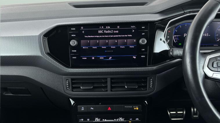 Experience style and comfort with this stunning blue Volkswagen T-Cross. Enjoy Nevada leather seats, Digital Cockpit Pro, and Adaptive Cruise Control for a refined and safe journey. Stay connected with Apple CarPlay and enjoy peace of mind with Blind Spot Assist. Paddle shift and automatic transmission make every drive smooth and effortless. Upgrade your daily drives with this sporty and practical SUV. 2 services recorded, last serviced on 25/09/2025 at 9, 538 miles. MOT to 07/07/2026. Visit our website for service history, online valuation, full vehicle specification plus multiple images. Any feature/option specified here is from 3rd party data. We cannot guarantee the accuracy of any specification supplied by a 3rd party. We recommend that you physically check the specification of the vehicle on site prior to purchase. This information does not form part of the buying contract. Terms & Conditions apply. We have over 2, 000 cars available from our 10 national branches, check our website to see all our stock. Our Trustpilot rating is 4.4/5 with over 9, 000 reviews.