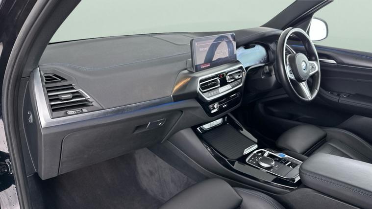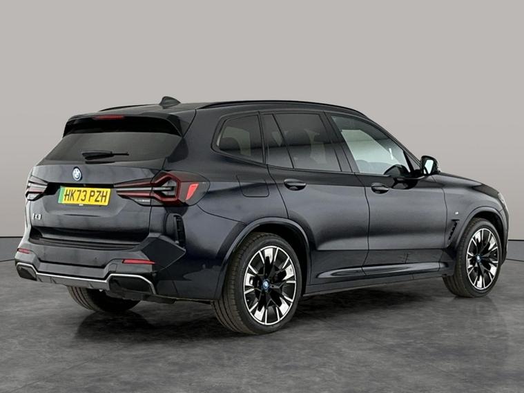 Experience the future with this sleek black BMW iX3 M Sport SUV. Enjoy the open-air feel with a panoramic roof and sunroof, and take every drive to the next level with a premium Harman/Kardon sound system and upgraded audio. Stay connected and in control with gesture control, head-up display, and surround view. Added luxuries include Vernasca leather heated seats, heated steering wheel, keyless entry, and advanced parking assistants, making every journey both effortless and enjoyable. MOT to 29/11/2026. Visit our website for service history, online valuation, full vehicle specification plus multiple images. Certain features listed may be available via subscription packages at extra costs, please consult with BMW for details. This vehicle is VAT qualifying. Any feature/option specified here is from 3rd party data. We cannot guarantee the accuracy of any specification supplied by a 3rd party. We recommend that you physically check the specification of the vehicle on site prior to purchase. This information does not form part of the buying contract. Terms & Conditions apply. We have over 2, 000 cars available from our 10 national branches, check our website to see all our stock. Our Trustpilot rating is 4.4/5 with over 9, 000 reviews.