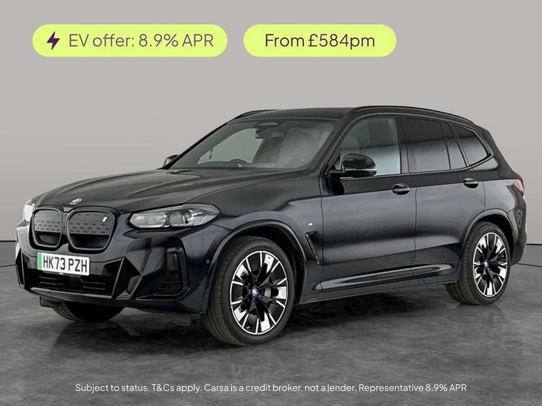 Experience the future with this sleek black BMW iX3 M Sport SUV. Enjoy the open-air feel with a panoramic roof and sunroof, and take every drive to the next level with a premium Harman/Kardon sound system and upgraded audio. Stay connected and in control with gesture control, head-up display, and surround view. Added luxuries include Vernasca leather heated seats, heated steering wheel, keyless entry, and advanced parking assistants, making every journey both effortless and enjoyable. MOT to 29/11/2026. Visit our website for service history, online valuation, full vehicle specification plus multiple images. Certain features listed may be available via subscription packages at extra costs, please consult with BMW for details. This vehicle is VAT qualifying. Any feature/option specified here is from 3rd party data. We cannot guarantee the accuracy of any specification supplied by a 3rd party. We recommend that you physically check the specification of the vehicle on site prior to purchase. This information does not form part of the buying contract. Terms & Conditions apply. We have over 2, 000 cars available from our 10 national branches, check our website to see all our stock. Our Trustpilot rating is 4.4/5 with over 9, 000 reviews.