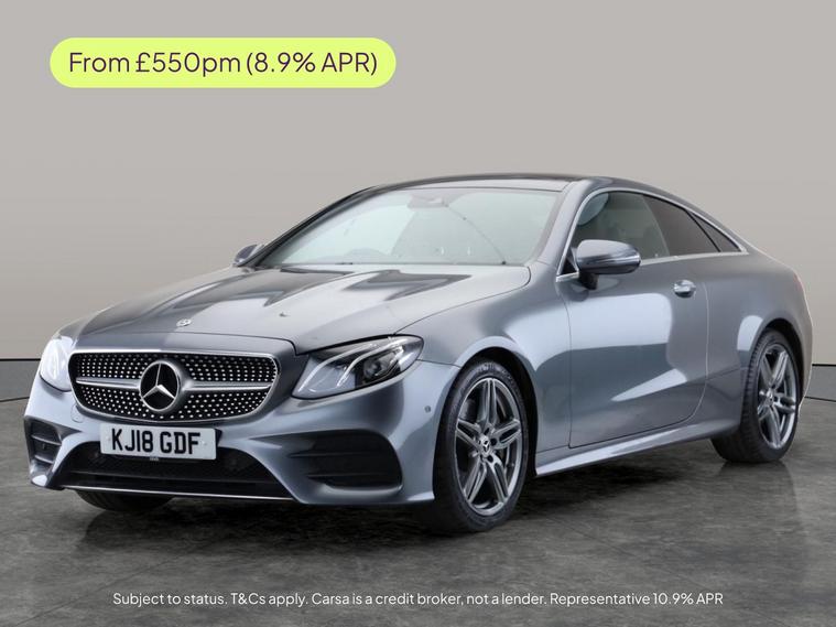 Experience luxury and performance with this sleek Mercedes-Benz E Class Coupe in stylish grey. Enjoy top features like the intuitive Mercedes COMAND Sat Nav, Apple CarPlay, and Keyless Entry for effortless journeys. Take the stress out of parking with Active Self Park and PARKTRONIC, plus Park Assist and Blind Spot Assist for added confidence. Drive in comfort with heated leather seats, adjustable suspension, and adaptive LED headlights, all complemented by the premium Comfort Pack. Connect easily with Bluetooth and cruise in style. 1 service recorded, last serviced on 27/08/2025 at 57, 202 miles. MOT to 29/08/2026. Visit our website for service history, online valuation, full vehicle specification plus multiple images. Any feature/option specified here is from 3rd party data. We cannot guarantee the accuracy of any specification supplied by a 3rd party. We recommend that you physically check the specification of the vehicle on site prior to purchase. This information does not form part of the buying contract. Terms & Conditions apply. We have over 2, 000 cars available from our 10 national branches, check our website to see all our stock. Our Trustpilot rating is 4.4/5 with over 9, 000 reviews.