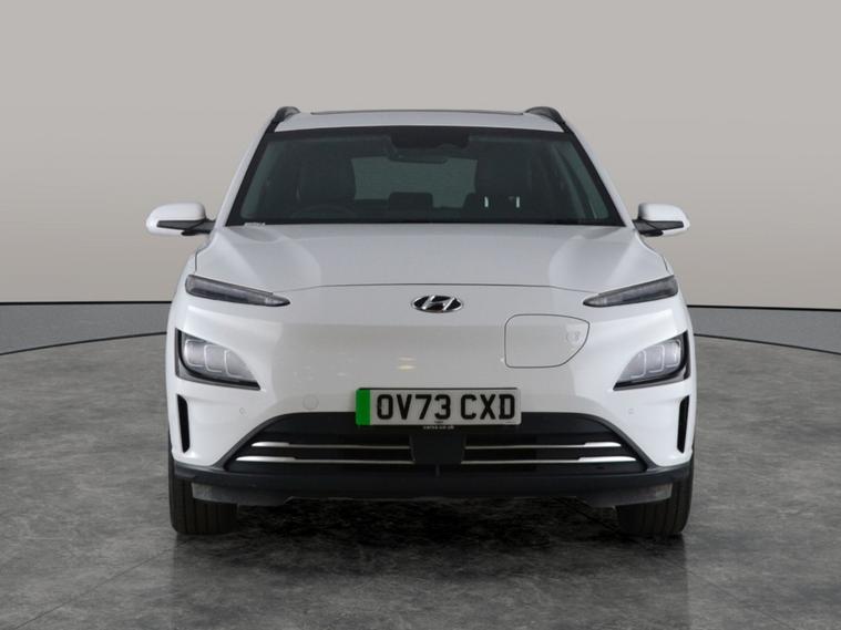 Experience the Hyundai Kona Electric with its luxurious heated and cooled leather seats, panoramic sunroof, and efficient heat pump for comfort in any season. Drive stress-free with adaptive cruise control, head-up display, active lane assist, and LED headlights. Enjoy seamless connectivity via Apple CarPlay and full control with keyless entry, heated steering wheel, and reversing camera. Navigate your journeys with integrated sat nav, all wrapped in a striking white SUV with black roof rails. 1 service recorded, last serviced on 11/01/2026 at 17, 311 miles. MOT to 28/09/2026. Visit our website for service history, online valuation, full vehicle specification plus multiple images. This vehicle is VAT qualifying. Any feature/option specified here is from 3rd party data. We cannot guarantee the accuracy of any specification supplied by a 3rd party. We recommend that you physically check the specification of the vehicle on site prior to purchase. This information does not form part of the buying contract. Terms & Conditions apply. We have over 2, 000 cars available from our 10 national branches, check our website to see all our stock. Our Trustpilot rating is 4.4/5 with over 9, 000 reviews.