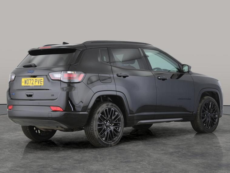 Experience adventure and comfort with this striking black Jeep Compass Hybrid. Enjoy luxury touches like heated seats and a heated steering wheel, plus seamless connectivity with Bluetooth audio streaming and a wireless charger. Navigate with confidence using adaptive cruise control, park assist, sat nav, and traffic sign recognition. Ride in style on distinctive 19in alloy wheels while enjoying advanced climate control and air conditioning. Charging leads included for added convenience. This Compass is ready for any journey. 3 services recorded, last serviced on 12/01/2026 at 25, 500 miles. Visit our website for service history, online valuation, full vehicle specification plus multiple images. This vehicle is VAT qualifying. Any feature/option specified here is from 3rd party data. We cannot guarantee the accuracy of any specification supplied by a 3rd party. We recommend that you physically check the specification of the vehicle on site prior to purchase. This information does not form part of the buying contract. Terms & Conditions apply. We have over 2, 000 cars available from our 10 national branches, check our website to see all our stock. Our Trustpilot rating is 4.4/5 with over 9, 000 reviews.