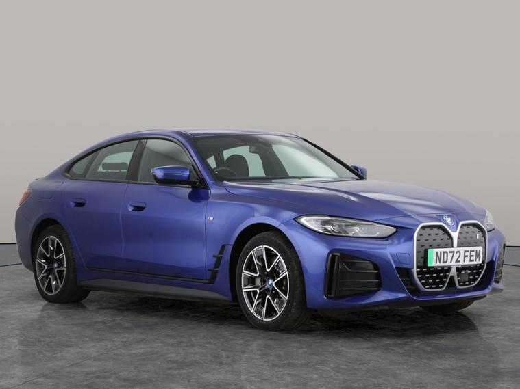 Experience the future of driving with this striking blue BMW i4 M Sport Gran Coupe. Enjoy luxury touches like heated Alcantara seats, half leather trim and advanced Adaptive Cruise Control. Stay safe and confident with Park Assist, LED headlights, reversing camera, and Attentiveness Assistant. Navigation is effortless with the intuitive Sat Nav and BMW Connected Package Professional. Drive in refined comfort with quiet electric power, all on eye-catching 18in alloy wheels. 2 services recorded, last serviced on 26/11/2025 at 26, 818 miles. MOT to 01/12/2026. Visit our website for service history, online valuation, full vehicle specification plus multiple images. Certain features listed may be available via subscription packages at extra costs, please consult with BMW for details. This vehicle is VAT qualifying. Any feature/option specified here is from 3rd party data. We cannot guarantee the accuracy of any specification supplied by a 3rd party. We recommend that you physically check the specification of the vehicle on site prior to purchase. This information does not form part of the buying contract. Terms & Conditions apply. We have over 2, 000 cars available from our 10 national branches, check our website to see all our stock. Our Trustpilot rating is 4.4/5 with over 9, 000 reviews.