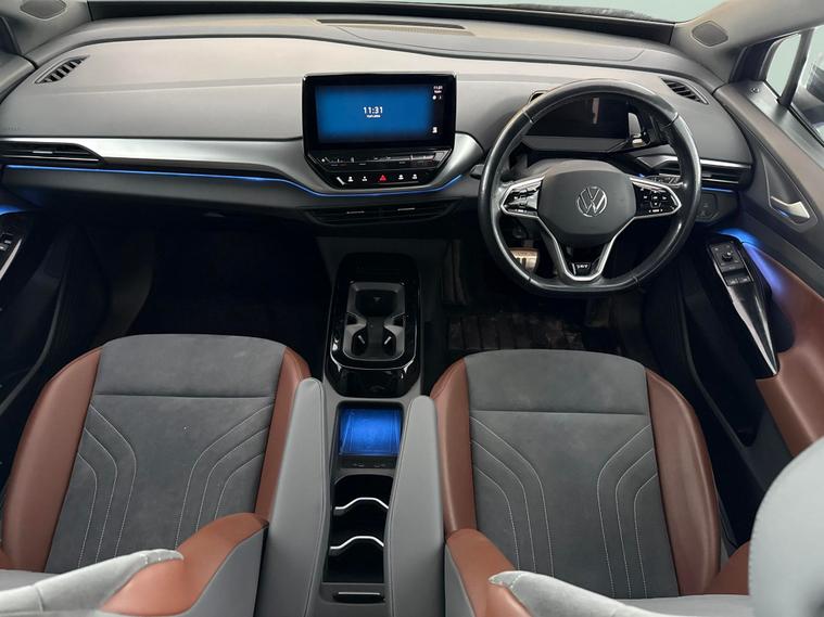 Experience the future with this Volkswagen ID.4 in striking blue. Enjoy top features like adaptive cruise control, a crisp reversing camera, heated seats, and seamless Apple CarPlay. The large 20in alloy wheels add real presence, while keyless entry and lane departure warning make every drive effortless. Navigate with confidence using the built-in sat nav, and stay comfortable with dual zone digital climate control and half leather seats. This electric automatic SUV is designed to impress and ready for your next adventure. 2 services recorded, last serviced on 18/04/2024 at 25, 189 miles. MOT to 17/08/2026. Visit our website for service history, online valuation, full vehicle specification plus multiple images. This vehicle is VAT qualifying. Any feature/option specified here is from 3rd party data. We cannot guarantee the accuracy of any specification supplied by a 3rd party. We recommend that you physically check the specification of the vehicle on site prior to purchase. This information does not form part of the buying contract. Terms & Conditions apply. We have over 2, 000 cars available from our 10 national branches, check our website to see all our stock. Our Trustpilot rating is 4.4/5 with over 9, 000 reviews.