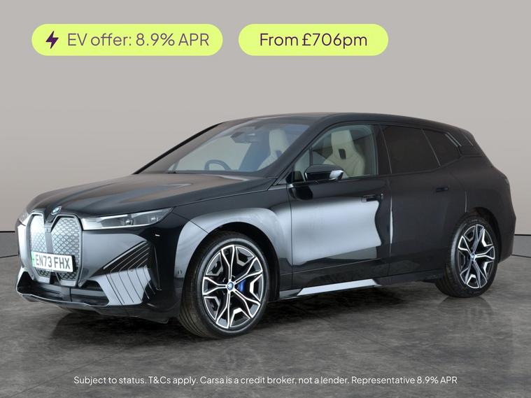 Experience premium electric driving in this striking black BMW iX SUV. Enjoy standout features like 22in alloy wheels, Parking Assistant Plus for effortless manoeuvering, and a panoramic Skylounge roof. Inside, the Stepped Sensatec Atelier interior in Oyster and the Technology Plus Pack create a truly luxurious feel. Rear privacy glass and sun protection glass add to the exclusivity, while the Harman/Kardon sound system and head-up display ensure a top-tier journey. With heated seats, advanced driving assistance, and crystal-clear LED headlights, this BMW iX redefines electric sophistication. 1 service recorded, last serviced on 19/01/2026 at 9, 671 miles. MOT to 19/01/2027. Visit our website for service history, online valuation, full vehicle specification plus multiple images. Certain features listed may be available via subscription packages at extra costs, please consult with BMW for details. This vehicle is VAT qualifying. Any feature/option specified here is from 3rd party data. We cannot guarantee the accuracy of any specification supplied by a 3rd party. We recommend that you physically check the specification of the vehicle on site prior to purchase. This information does not form part of the buying contract. Terms & Conditions apply. We have over 2, 000 cars available from our 10 national branches, check our website to see all our stock. Our Trustpilot rating is 4.4/5 with over 9, 000 reviews.
