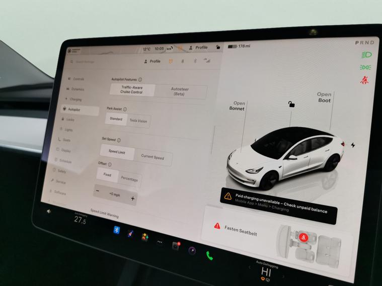 Experience innovation with this Tesla Model 3. Enjoy luxury touches like a panoramic roof, sunroof, heated leather seats, and a heated steering wheel. Stay safe and confident with adaptive cruise control, active lane assist, blind spot assist, and park assist. Keyless entry, a reversing camera, LED headlights, sat nav, and built-in Wifi add convenience. Embrace the future of driving in comfort and style, all powered by Teslas renowned electric performance. 1 service recorded, last serviced on 23/01/2026 at 29, 461 miles. MOT to 25/06/2026. Visit our website for service history, online valuation, full vehicle specification plus multiple images. This vehicle is VAT qualifying. Any feature/option specified here is from 3rd party data. We cannot guarantee the accuracy of any specification supplied by a 3rd party. We recommend that you physically check the specification of the vehicle on site prior to purchase. This information does not form part of the buying contract. Terms & Conditions apply. We have over 2, 000 cars available from our 10 national branches, check our website to see all our stock. Our Trustpilot rating is 4.4/5 with over 9, 000 reviews.