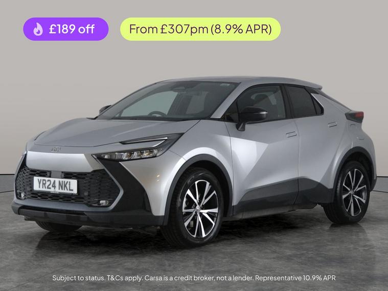 Experience the versatility of the Toyota C-HR SUV in stylish silver, loaded with features for your comfort and confidence. Enjoy heated seats and a heated steering wheel for chilly mornings, or use keyless entry for added convenience. Adaptive Cruise Control and Lane Trace Assist make every journey smooth, while the blind spot assist and front and rear parking sensors keep you safe. Stay connected with Apple CarPlay, Bluetooth, and integrated Sat Nav, plus a reversing camera for easy manoeuvres. Discover hybrid efficiency with automatic ease. 1 service recorded, last serviced on 13/06/2025 at 10, 312 miles. MOT to 27/06/2027. Visit our website for service history, online valuation, full vehicle specification plus multiple images. This vehicle is VAT qualifying. Any feature/option specified here is from 3rd party data. We cannot guarantee the accuracy of any specification supplied by a 3rd party. We recommend that you physically check the specification of the vehicle on site prior to purchase. This information does not form part of the buying contract. Terms & Conditions apply. We have over 2, 000 cars available from our 10 national branches, check our website to see all our stock. Our Trustpilot rating is 4.4/5 with over 9, 000 reviews.