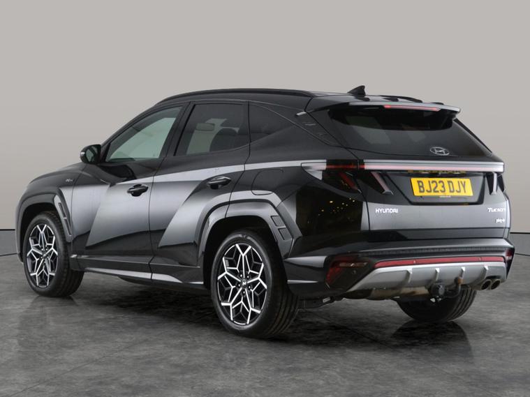 Step into sophistication with this black Hyundai Tucson N Line SUV. Enjoy premium touches like heated half leather seats, dual zone digital climate control, and striking 19in alloy wheels. Stay entertained and connected effortlessly with Apple CarPlay and wireless charging. Navigation is a breeze with the built-in Sat Nav and parking is stress-free with front and rear sensors plus a reversing camera. Keyless entry and advanced safety features such as lane departure warning add peace of mind. Experience hybrid power with the convenience of an automatic plug-in system. 4 services recorded, last serviced on 08/09/2025 at 41, 196 miles. MOT to 01/03/2026. Visit our website for service history, online valuation, full vehicle specification plus multiple images. This vehicle is VAT qualifying. Any feature/option specified here is from 3rd party data. We cannot guarantee the accuracy of any specification supplied by a 3rd party. We recommend that you physically check the specification of the vehicle on site prior to purchase. This information does not form part of the buying contract. Terms & Conditions apply. We have over 2, 000 cars available from our 10 national branches, check our website to see all our stock. Our Trustpilot rating is 4.4/5 with over 9, 000 reviews.