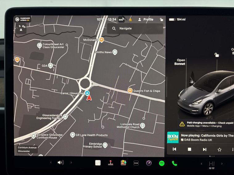 Experience the future with this sleek grey Tesla Model Y SUV. Enjoy a spacious cabin with a panoramic roof and sunroof, providing plenty of light and a sophisticated feel. Stay comfortable with heated leather seats and a heated steering wheel, while adaptive cruise control and advanced safety features like blind spot assist and lane departure warning system enhance every journey. Keyless entry, electric seats, reversing camera, and a state-of-the-art infotainment system with sat nav and Bluetooth audio add convenience to every drive. 1 service recorded, last serviced on 26/01/2026 at 24, 895 miles. MOT to 29/01/2027. Visit our website for service history, online valuation, full vehicle specification plus multiple images. This vehicle is VAT qualifying. Any feature/option specified here is from 3rd party data. We cannot guarantee the accuracy of any specification supplied by a 3rd party. We recommend that you physically check the specification of the vehicle on site prior to purchase. This information does not form part of the buying contract. Terms & Conditions apply. We have over 2, 000 cars available from our 10 national branches, check our website to see all our stock. Our Trustpilot rating is 4.4/5 with over 9, 000 reviews.