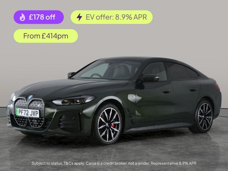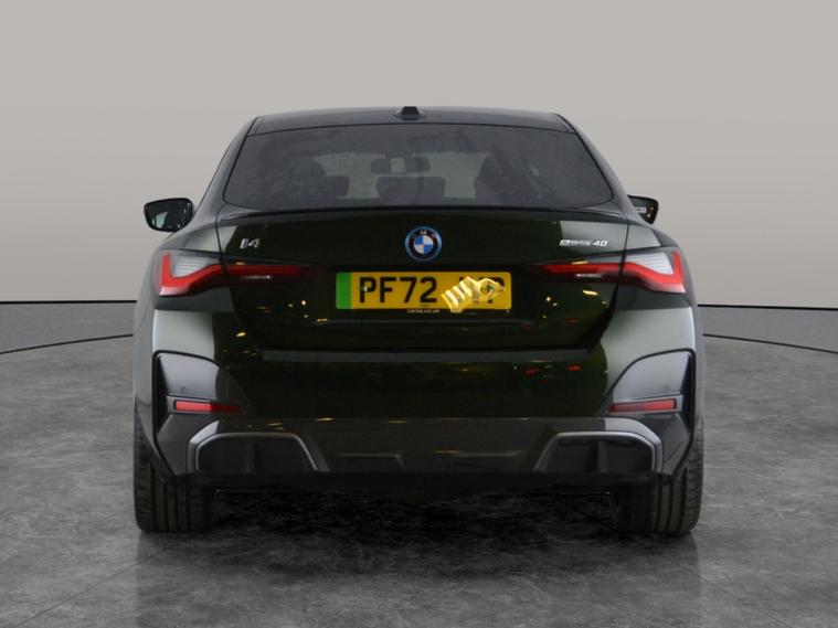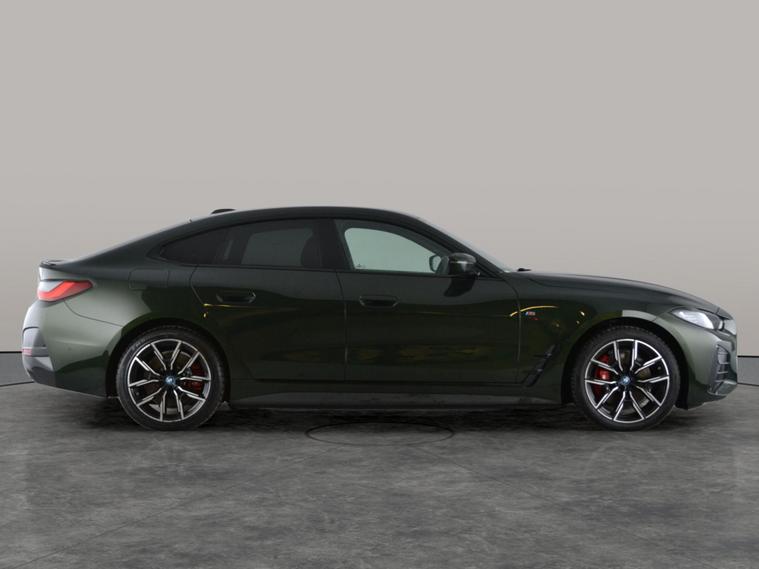 Experience the thrill of electric driving in this striking green BMW i4 M Sport. Enjoy the extra style and comfort of the M Sport Pro Package, plush Alcantara trim, and 19in M Light Y-Spoke alloy wheels. Rear privacy glass and sun protection glass add both privacy and sophistication. Stay connected with Apple CarPlay and the BMW Connected Package Professional, while features like adaptive cruise control, heated seats, keyless entry, and Park Assist make every journey a joy. Illuminate the road with LED headlights and relax with intuitive driving modes. 1 service recorded, last serviced on 10/01/2025 at 22, 101 miles. MOT to 25/01/2027. Visit our website for service history, online valuation, full vehicle specification plus multiple images. Certain features listed may be available via subscription packages at extra costs, please consult with BMW for details. This vehicle is VAT qualifying. Any feature/option specified here is from 3rd party data. We cannot guarantee the accuracy of any specification supplied by a 3rd party. We recommend that you physically check the specification of the vehicle on site prior to purchase. This information does not form part of the buying contract. Terms & Conditions apply. We have over 2, 000 cars available from our 10 national branches, check our website to see all our stock. Our Trustpilot rating is 4.4/5 with over 9, 000 reviews.