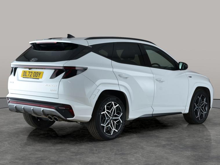 Discover the stylish Hyundai Tucson in striking white with an automatic petrol hybrid drive. Enjoy luxurious heated seats, advanced LED headlights, and seamless Apple CarPlay integration. Effortless keyless entry and a wireless charger keep you connected on the go. Safety is top-notch with active lane assist and lane departure warning, plus a handy reversing camera. Sat nav, cruise control, and selectable driving modes make every journey smooth and enjoyable. Black roof rails add a sporty finishing touch to this impressive SUV. 2 services recorded, last serviced on 04/04/2025 at 20, 691 miles. MOT to 27/01/2027. Visit our website for service history, online valuation, full vehicle specification plus multiple images. This vehicle is VAT qualifying. Any feature/option specified here is from 3rd party data. We cannot guarantee the accuracy of any specification supplied by a 3rd party. We recommend that you physically check the specification of the vehicle on site prior to purchase. This information does not form part of the buying contract. Terms & Conditions apply. We have over 2, 000 cars available from our 10 national branches, check our website to see all our stock. Our Trustpilot rating is 4.4/5 with over 9, 000 reviews.
