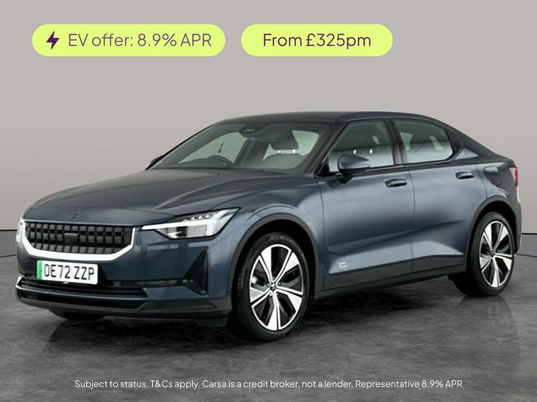 Experience the innovative Polestar 2 in striking blue. Enjoy modern luxuries like heated seats, keyless entry and start, a reversing camera, and adaptive LED headlights for confidence at night. Stay safe with lane departure warning and relax with climate control and cruise control on every journey. Park assist and Bluetooth connectivity complete this well-equipped electric fastbackstyle meets advanced Scandinavian technology. MOT to 06/11/2026. Visit our website for service history, online valuation, full vehicle specification plus multiple images. This vehicle is VAT qualifying. Any feature/option specified here is from 3rd party data. We cannot guarantee the accuracy of any specification supplied by a 3rd party. We recommend that you physically check the specification of the vehicle on site prior to purchase. This information does not form part of the buying contract. Terms & Conditions apply. We have over 2, 000 cars available from our 10 national branches, check our website to see all our stock. Our Trustpilot rating is 4.4/5 with over 9, 000 reviews.