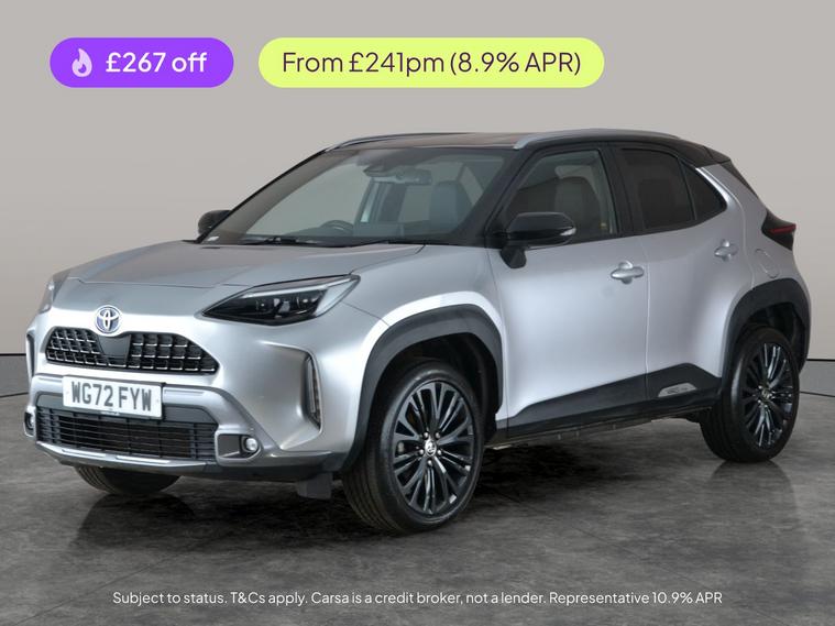 Upgrade your journeys with this stylish Toyota Yaris Cross in silver, featuring luxurious heated and cooled half-leather seats and a premium dual zone digital climate control. Stay seamlessly connected with Apple CarPlay, Bluetooth audio streaming, and an intuitive sat nav system. Safety and convenience are a given with adaptive cruise control, lane departure warning, lane trace assist, traffic sign recognition, and a reversing camera. With selectable driving modes and automatic transmission, this hybrid SUV delivers comfort, tech, and efficiency for every adventure. 1 service recorded, last serviced on 11/06/2025 at 26, 754 miles. MOT to 11/12/2026. Visit our website for service history, online valuation, full vehicle specification plus multiple images. This vehicle is VAT qualifying. Any feature/option specified here is from 3rd party data. We cannot guarantee the accuracy of any specification supplied by a 3rd party. We recommend that you physically check the specification of the vehicle on site prior to purchase. This information does not form part of the buying contract. Terms & Conditions apply. We have over 2, 000 cars available from our 10 national branches, check our website to see all our stock. Our Trustpilot rating is 4.4/5 with over 9, 000 reviews.