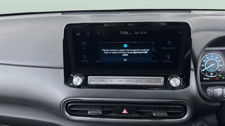 Experience top-spec comfort in this grey Hyundai Kona Electric SUV. Enjoy a panoramic sunroof, head-up display, keyless entry, heated seats and steering wheel plus electric seats for a premium drive. Advanced tech includes Apple CarPlay, sat nav, Bluetooth, wireless charging, and paddle shift controls. Stay safe with blind spot assist, lane departure warning, and a reversing camera. Cruise control adds ease to every journey. This Kona blends modern electric driving with exceptional style and convenience. 3 services recorded, last serviced on 03/03/2025 at 48, 604 miles. MOT to 14/09/2026. Visit our website for service history, online valuation, full vehicle specification plus multiple images. Any feature/option specified here is from 3rd party data. We cannot guarantee the accuracy of any specification supplied by a 3rd party. We recommend that you physically check the specification of the vehicle on site prior to purchase. This information does not form part of the buying contract. Terms & Conditions apply. We have over 2, 000 cars available from our 10 national branches, check our website to see all our stock. Our Trustpilot rating is 4.4/5 with over 9, 000 reviews.