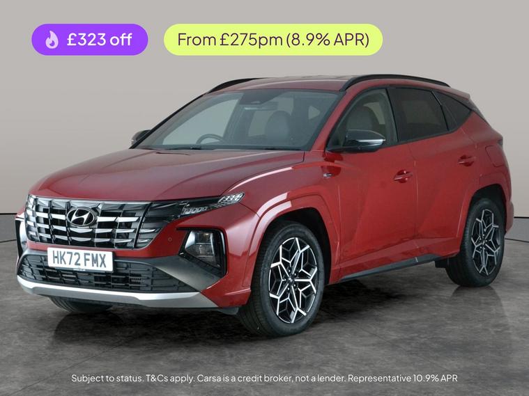 Stand out in style with this striking red Hyundai Tucson. Enjoy top-tier comfort with Alcantara and heated seats, plus seamless connectivity thanks to Apple CarPlay and Bluetooth audio streaming. Keyless entry makes every journey easier, while LED headlights and a reversing camera boost confidence and safety. Navigate city streets effortlessly with adaptive cruise control, lane departure warning, and a fully digital display. All powered by an efficient petrol hybrid automatic. 3 services recorded, last serviced on 26/01/2026 at 46, 557 miles. MOT to 17/11/2026. Visit our website for service history, online valuation, full vehicle specification plus multiple images. Any feature/option specified here is from 3rd party data. We cannot guarantee the accuracy of any specification supplied by a 3rd party. We recommend that you physically check the specification of the vehicle on site prior to purchase. This information does not form part of the buying contract. Terms & Conditions apply. We have over 2, 000 cars available from our 10 national branches, check our website to see all our stock. Our Trustpilot rating is 4.4/5 with over 9, 000 reviews.