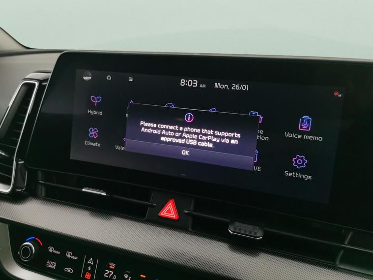 Experience the Kia Sportage Hybrid Automatic in stunning green with a host of premium features. Enjoy the comfort of heated electric seats and a heated steering wheel, plus effortless entry with keyless access. Stay effortlessly connected with Apple CarPlay and Bluetooth audio streaming. Navigate with ease using integrated Sat Nav and parking sensors front and rear, aided by a reversing camera. Drive with peace of mind thanks to Lane Following Assist and Lane Departure Warning. Dual zone digital climate control keeps everyone comfortable. 2 services recorded, last serviced on 25/01/2026 at 16, 867 miles. MOT to 01/03/2027. Visit our website for service history, online valuation, full vehicle specification plus multiple images. This vehicle is VAT qualifying. Any feature/option specified here is from 3rd party data. We cannot guarantee the accuracy of any specification supplied by a 3rd party. We recommend that you physically check the specification of the vehicle on site prior to purchase. This information does not form part of the buying contract. Terms & Conditions apply. We have over 2, 000 cars available from our 10 national branches, check our website to see all our stock. Our Trustpilot rating is 4.4/5 with over 9, 000 reviews.