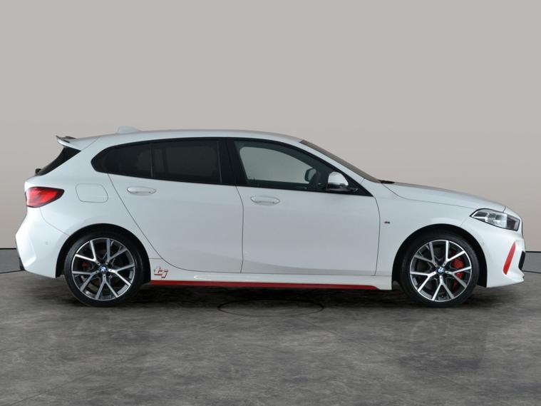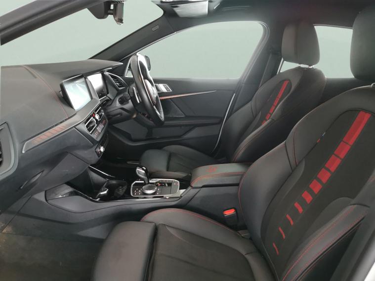 Experience driving excitement with this striking white BMW 1 Series hatchback. Enjoy the luxury of a heated steering wheel, Park Assist for effortless parking, 18in M Light Y Spoke bicolour alloy wheels, and rear privacy glass for added style. Inside, relax in Anthracite Nivala Cloth-Sensatec seats with red highlights, heated front seats, and lumbar support. Stay connected with Apple CarPlay, Sat Nav, and BMW Live Cockpit Professional, and feel secure with LED headlights and Lane Departure Warning. Pure driving pleasure with BMW's Sport Automatic Transmission. 4 services recorded, last serviced on 20/11/2025 at 31, 535 miles. MOT to 18/12/2026. Visit our website for service history, online valuation, full vehicle specification plus multiple images. Certain features listed may be available via subscription packages at extra costs, please consult with BMW for details. This vehicle is VAT qualifying. Any feature/option specified here is from 3rd party data. We cannot guarantee the accuracy of any specification supplied by a 3rd party. We recommend that you physically check the specification of the vehicle on site prior to purchase. This information does not form part of the buying contract. Terms & Conditions apply. We have over 2, 000 cars available from our 10 national branches, check our website to see all our stock. Our Trustpilot rating is 4.4/5 with over 9, 000 reviews.