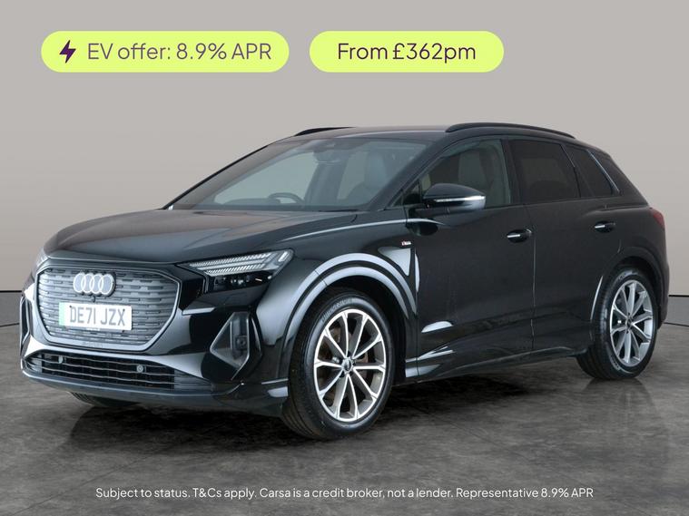 Experience premium electric driving with this Audi Q4 E-tron. Enjoy comfort and convenience with the Comfort and Sound Package, featuring heated and electric memory seats, plus an immersive sound system. Navigate easily with MMI Navigation Plus and crisp LED headlights for excellent visibility. The bold black styling package adds a sporty touch, while advanced tech such as lane departure warning and traffic sign recognition brings peace of mind on every journey. Charging lead included for ultimate convenience. 3 services recorded, last serviced on 04/02/2026 at 41, 857 miles. MOT to 09/12/2026. Visit our website for service history, online valuation, full vehicle specification plus multiple images. Certain features listed may be available via subscription packages at extra costs, please consult with Audi for details. This vehicle is VAT qualifying. Any feature/option specified here is from 3rd party data. We cannot guarantee the accuracy of any specification supplied by a 3rd party. We recommend that you physically check the specification of the vehicle on site prior to purchase. This information does not form part of the buying contract. Terms & Conditions apply. We have over 2, 000 cars available from our 10 national branches, check our website to see all our stock. Our Trustpilot rating is 4.4/5 with over 9, 000 reviews.